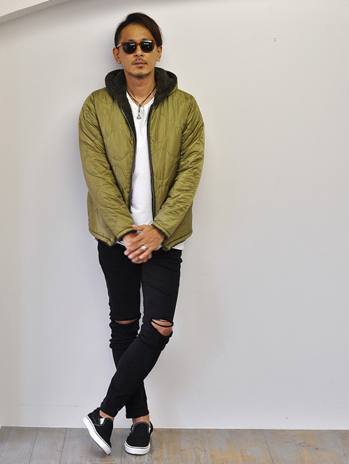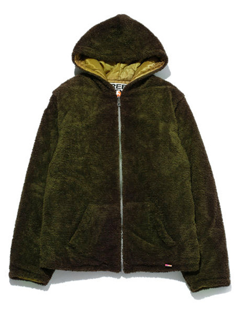 FREE CITY ボアフリース リバーシブル ジップアップパーカー OLIVE