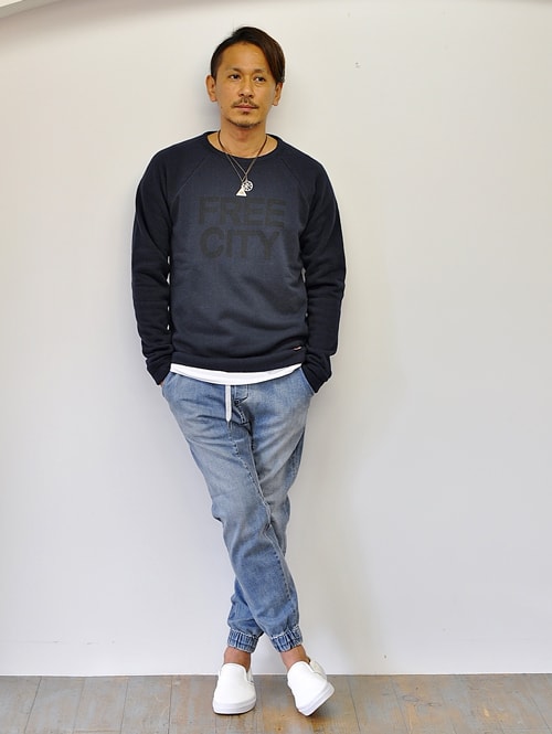 FREE CITY テリーボア ラグランスウェット NAVY