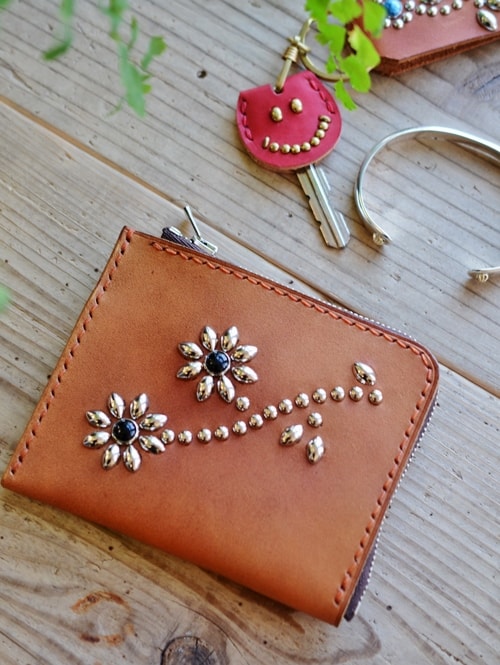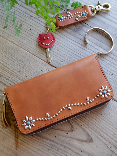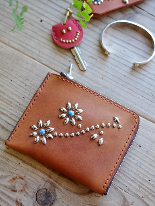 CROSSED ARROWS エトフ別注 ターコイズフラワー スモールウォレット ライトブラウン
