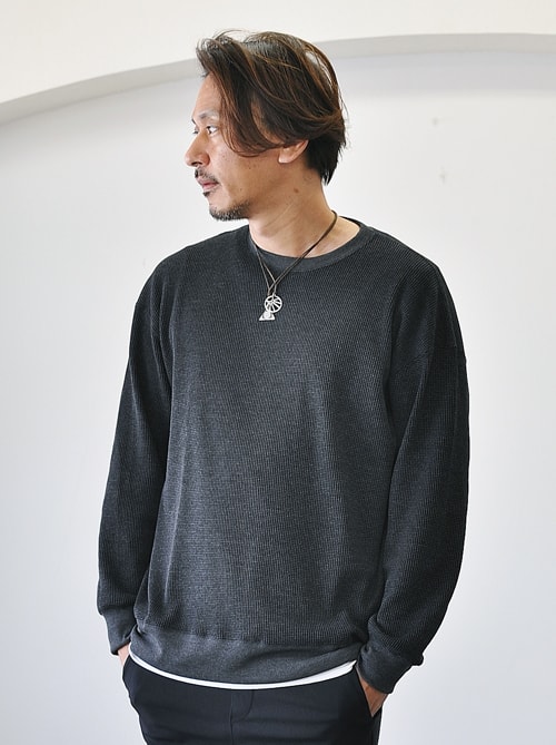 sergeant スノーワッフル オフショルダークルー washed black