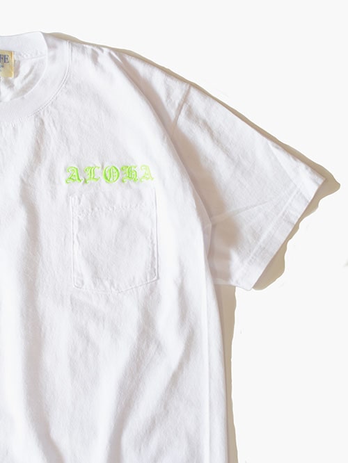 EOFFEE ORIGINAL ヘビーウエイト刺繍 ポケティー White/Neon