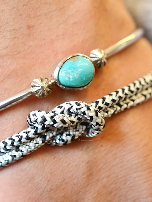 希少なハイグレードのナコザリ鉱山で採れた天然ターコイズを使ったもので、その淡