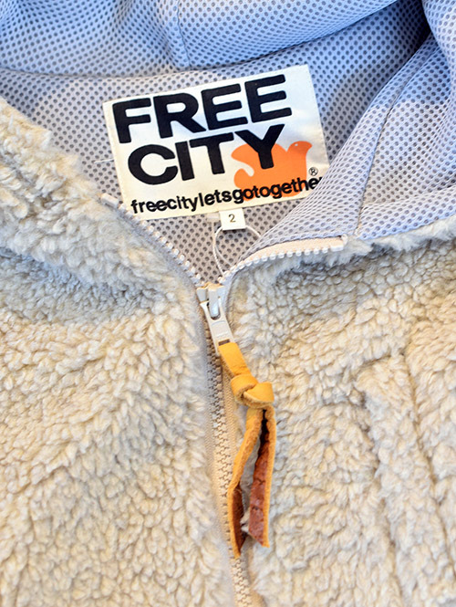 FREE CITY DVエンブロイダリーソフトボア ジップフードジャケット