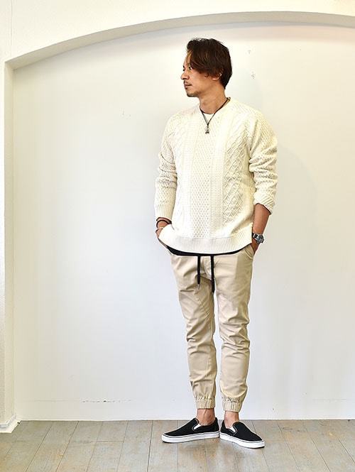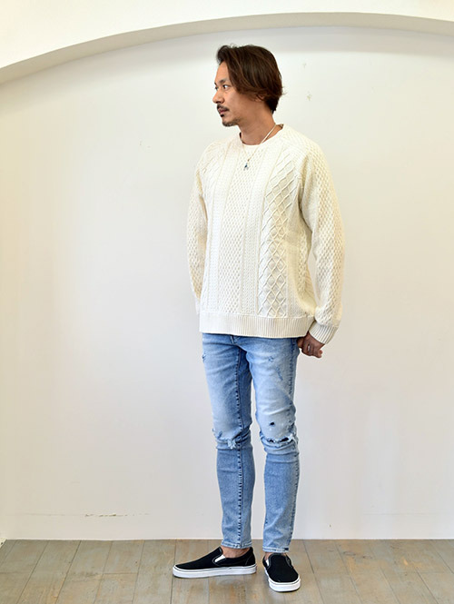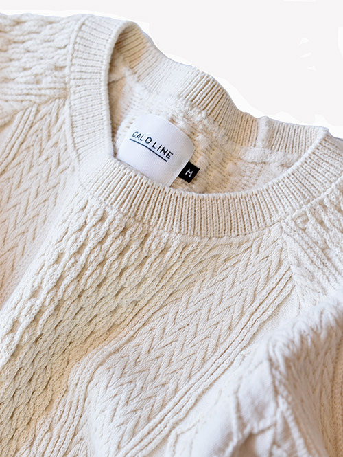 CAL O LINE クルーネック ケーブル コットンニット NATURAL