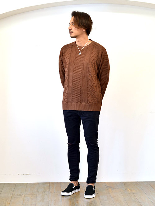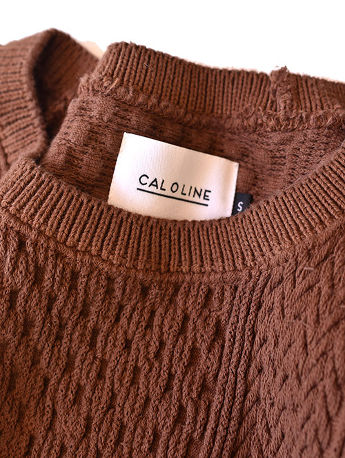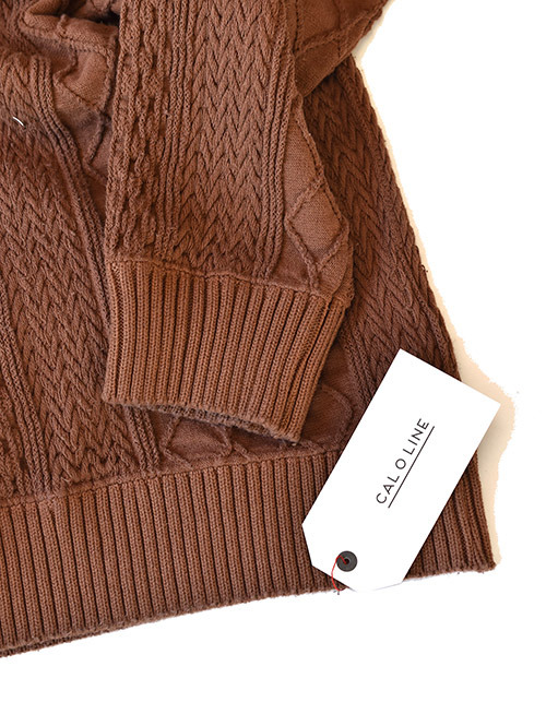 CAL O LINE クルーネック ケーブル コットンニット BROWN