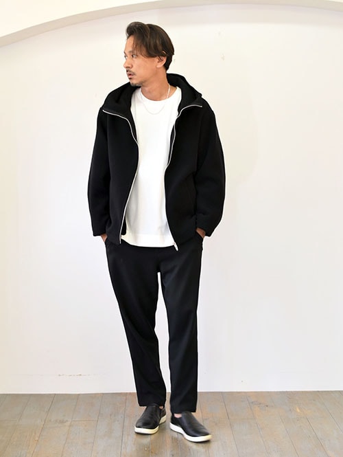 LA MOND カシミヤウール ジップアップフードパーカー BLACK