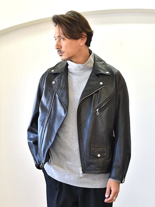 Harlem Rounge オフショルダー ダブルライダース レザージャケット