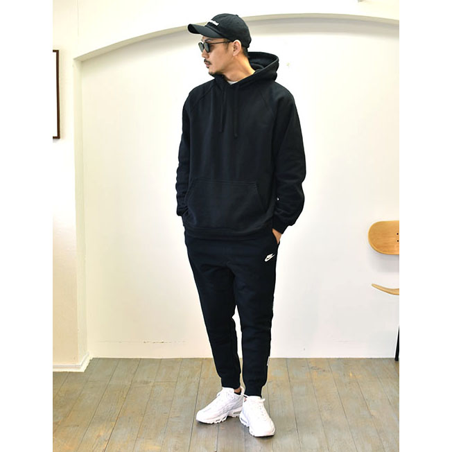 オールブラックにはホワイトのスニーカーが似合う