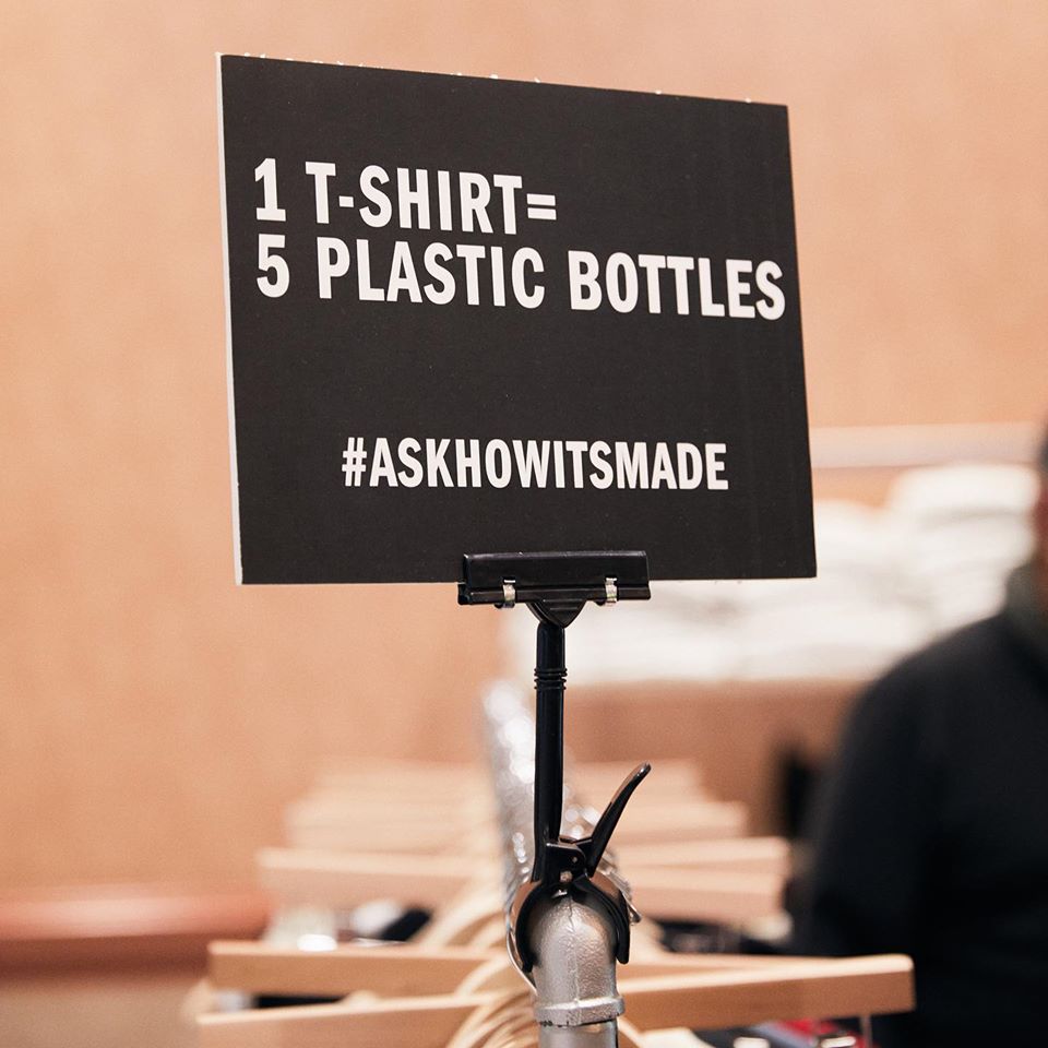 1枚のTシャツを作るのにペットボトル5本を使っており