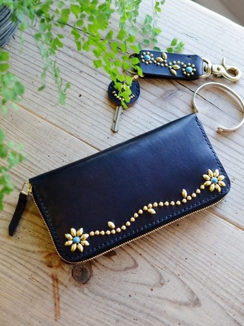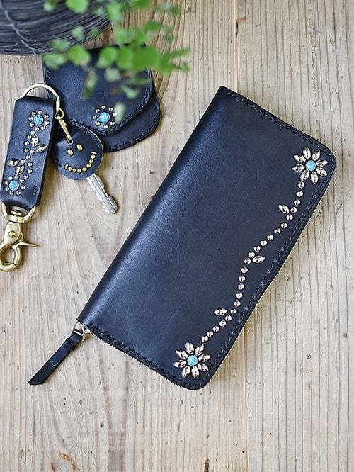 CROSSED ARROWS Studded LONG WALLET BLACK TYPE 2 ターコイズ