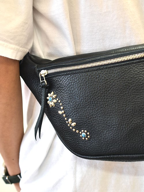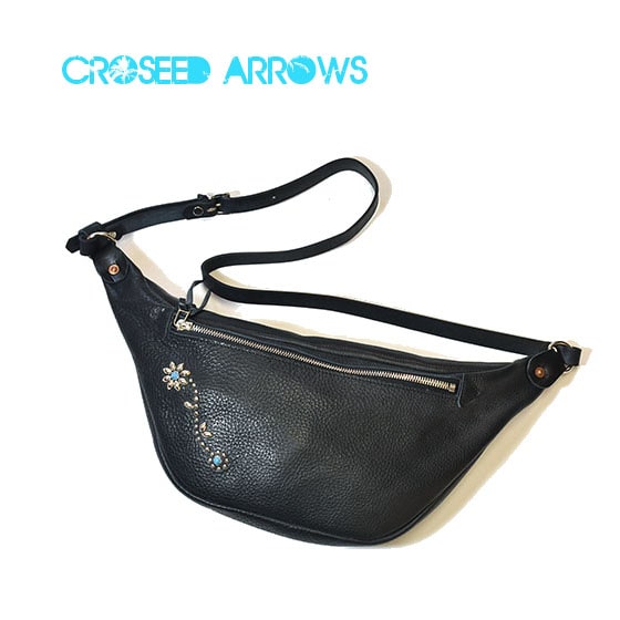 CROSSED ARROWS エトフ別注 ターコイズフラワー レザーショルダーバッグ BLACK