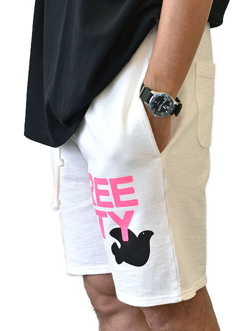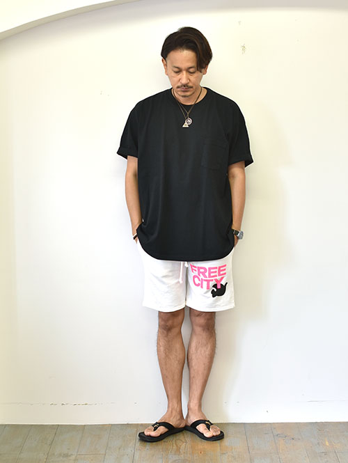 ヴィンテージの生地にみられる独特な、太さにムラ感があるマーブル状の糸で編み上げた、薄手の素材を使ったスエットショーツ