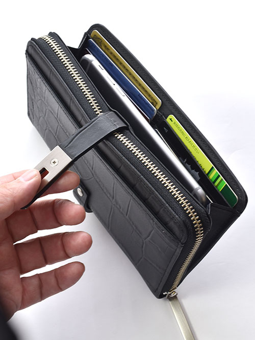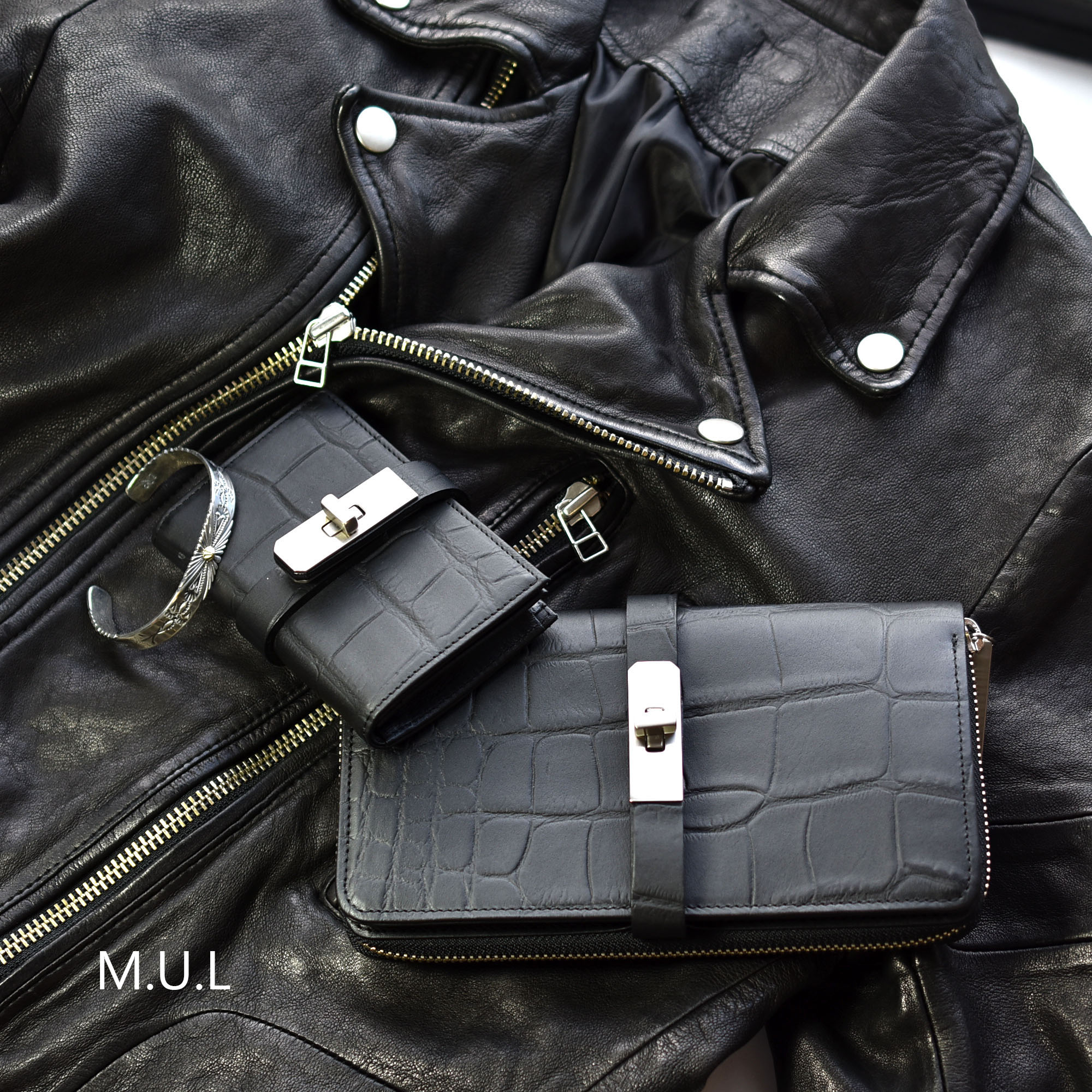 M.U.L クロコ型押しレザーウォレット BLACK