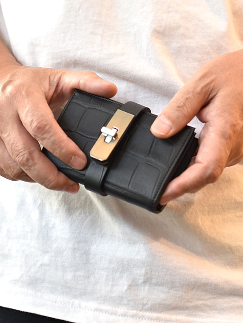 M.U.L Leather SMALL WALLET クロコ型押し BLACK