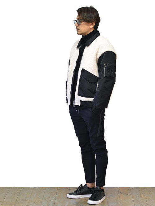 Harlem Rounge ミリタリーボアジャケット Black/White
