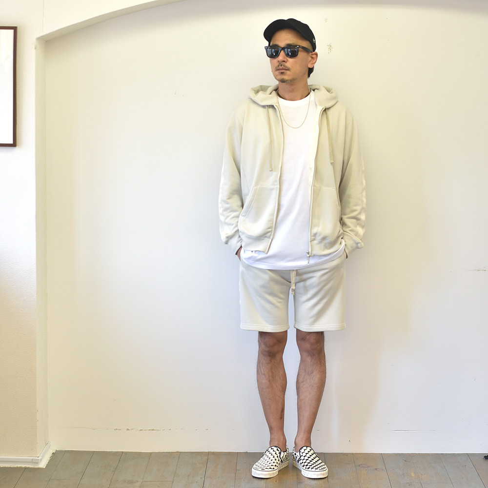 スエットの様なフレンチテリーを使ったパーカーとショーツ