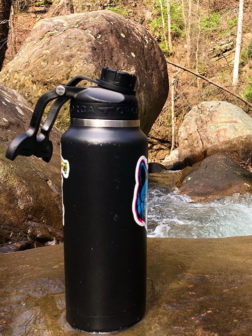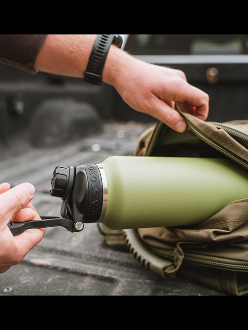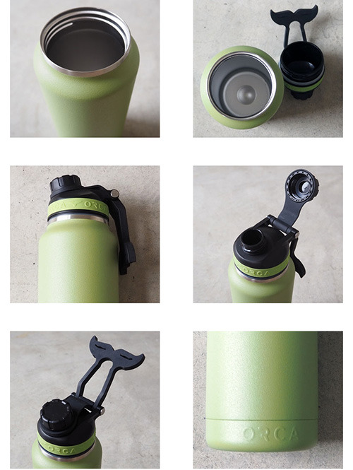 シンプルで開け閉めが簡単で漏れにくい注ぎ口を持ち、アイコンにもなるキャップに付く丈夫なWhale Tail Handle(オルカの尻尾)は、指にかけてスムーズに持運べ、フックが有ればいろいろな所に引っ掛ける事も出来ます。