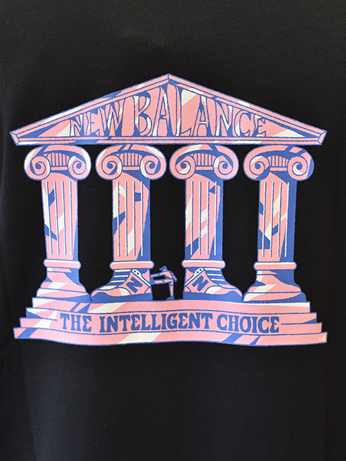 バックは神殿の柱にNew Balanceを穿かせたデザイン