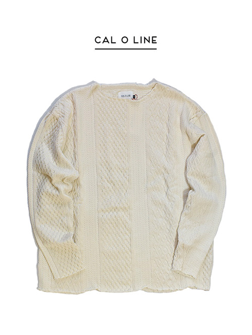 CAL O LINE ケーブルジャガード カットオフ ニット