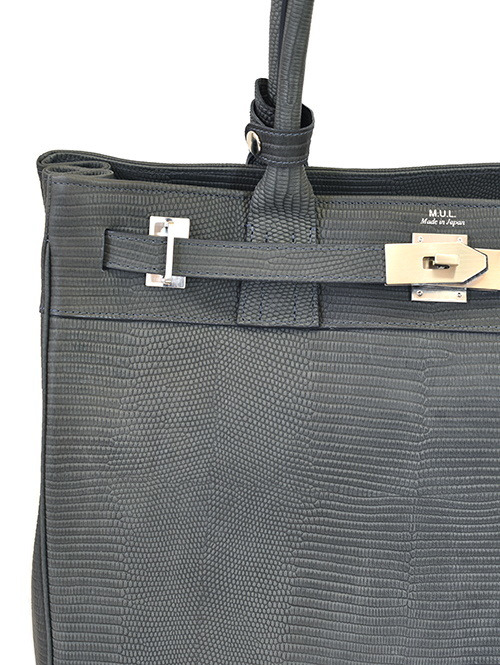 M.U.L Leather Grey Tote (M) リザード型押しレザー