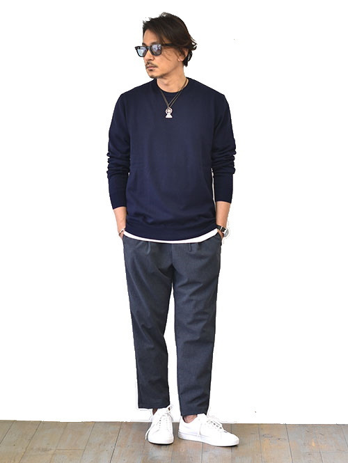 スエットとは違ったニットのクルーネック
