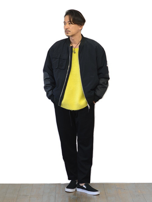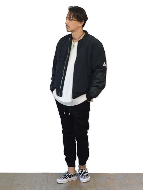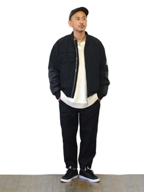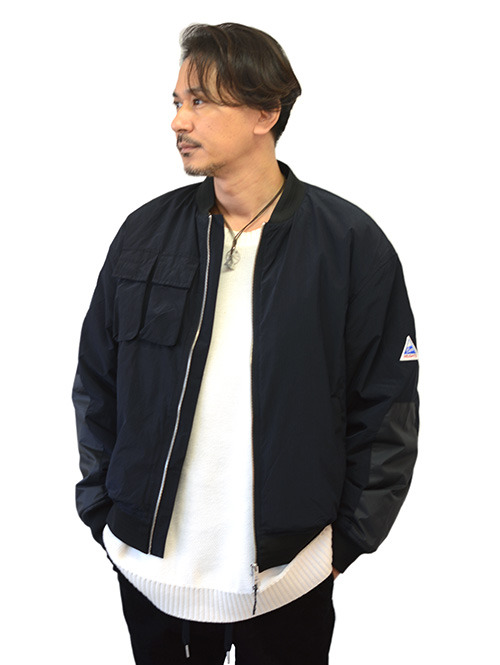 アウトの要素を取り入れてデザインされたボンバージャケットで
