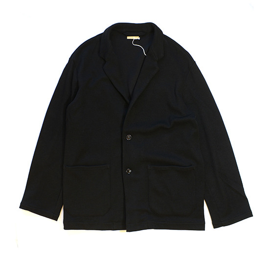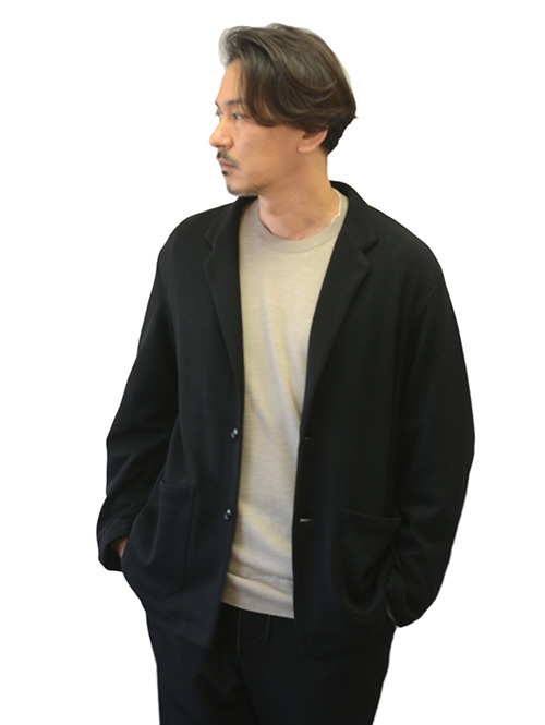 厚手のツイード織のニット素材で作られたジャケットは