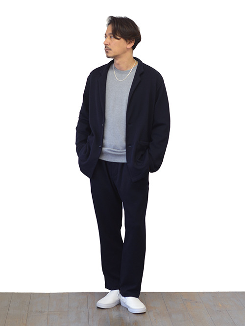ネイビーだと明るいスタイリングが楽しめます