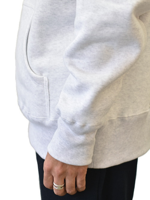 旧式の吊り編み機でゆっくり編み上げた肉厚のスウェットを使って作られたパーカー