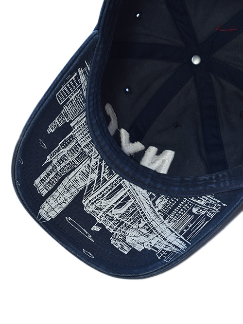 つばの裏にNew Yorkの街並みがプリントされており