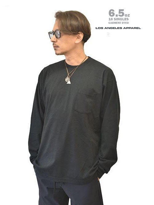 LOS ANGELES APPAREL 6.5oz ヘビーウエイト ロングスリーブ ポケットTシャツ Black 再入荷