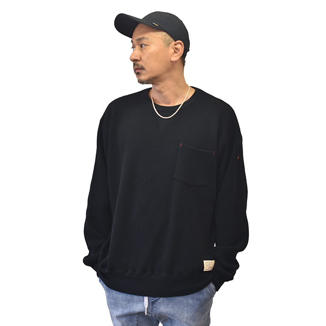 SMART SPICE BIG WAFFLE CREW NECK Black 再入荷