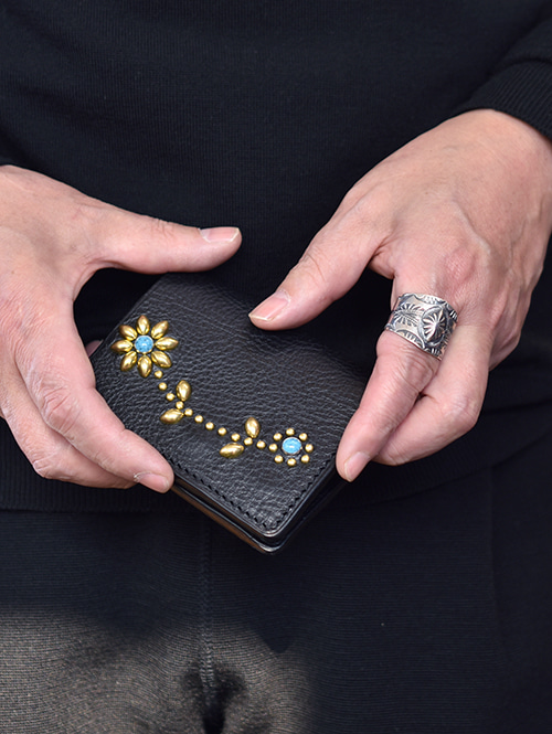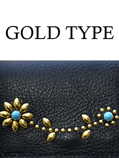 CROSSED ARROWS アリゾナレザー スタッズ スモール トラッカーウォレット Gold
