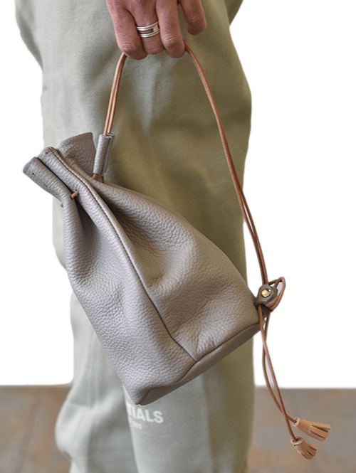 巾着と同じシボ感のあるレザーを使っており