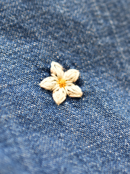 ハンドステッチの花柄を入れて