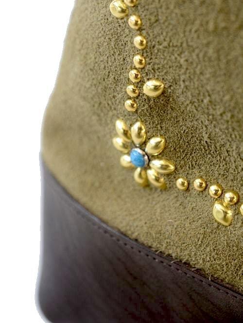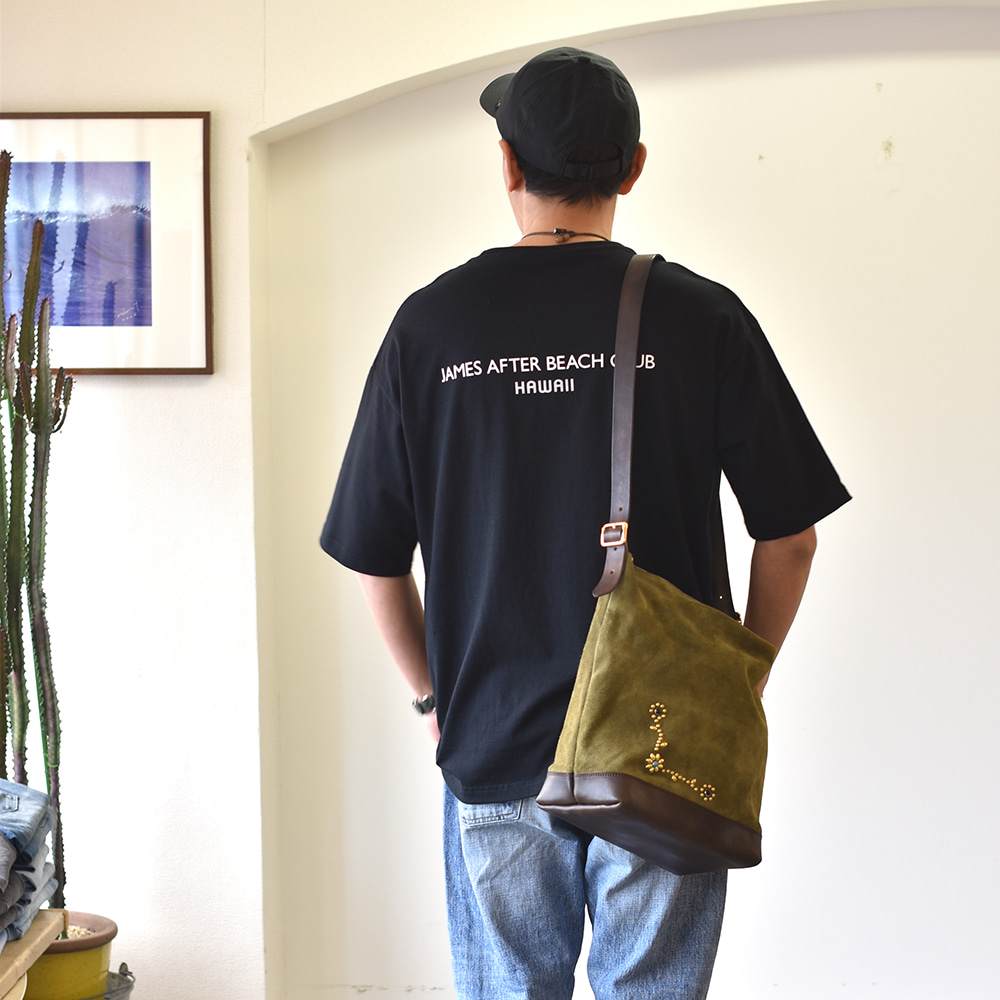 CROSSED ARROWS フラワースタッズ レザーショルダーバッグ KHAKI