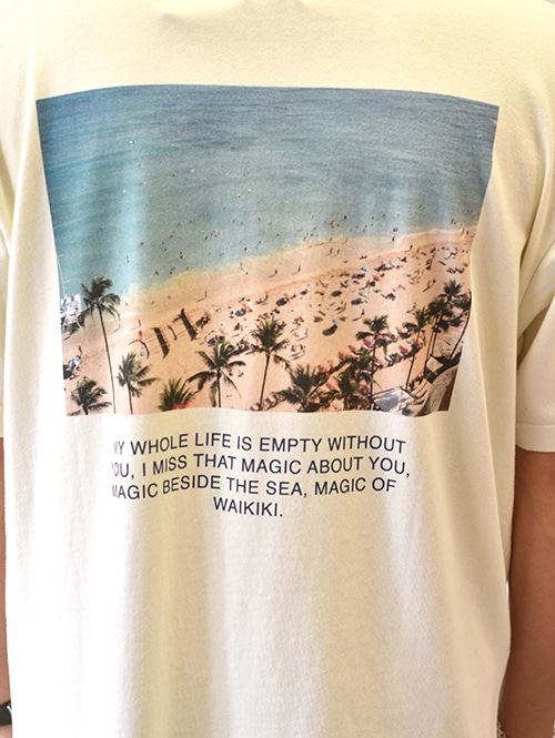 ワイキキのホテルから撮ったワイキキビーチが使われています