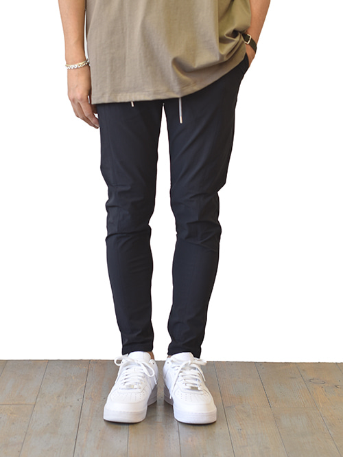4wayストレッチ、撥水、接触冷感の機能を持つハイテク素材を使ったパンツ